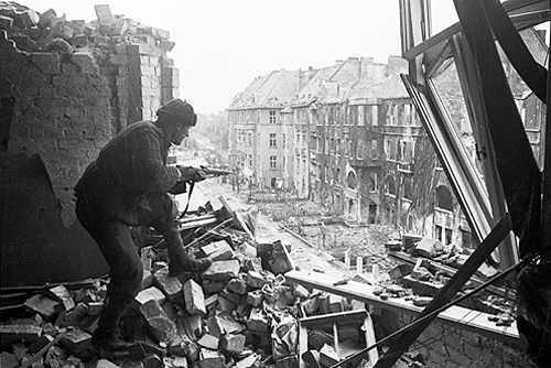 2 мая 1945 года, 1410 день войны. Войска 1-го Белорусского фронта под командованием Маршала Советского Союза Жукова, при содействии войск 1-го Украинского фронта под командованием Маршала Советского Союза Конева, после упорных уличных боёв завершили разгром Берлинской группы немецких войск и сегодня, 2 мая, полностью овладели столицей Германии городом Берлин — центром немецкого империализма и очагом немецкой агрессии.