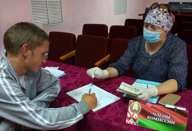 Павел Антунович работает в ОАО «Макеевичи», пришел голосовать досрочно на Макеевичский участок № 23 и получил бюллетень из рук члена участковой комиссии Натальи Кирпиченковой.