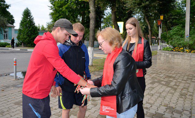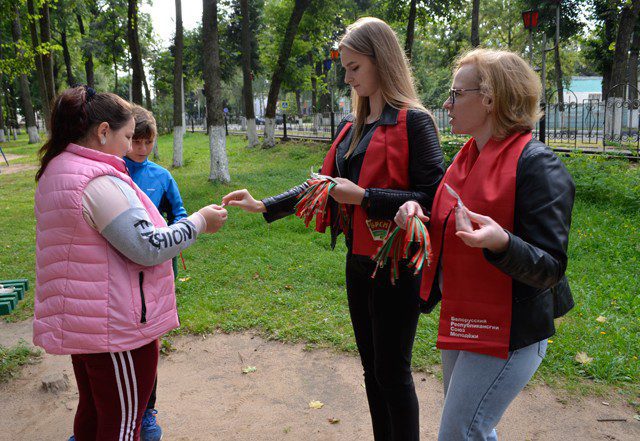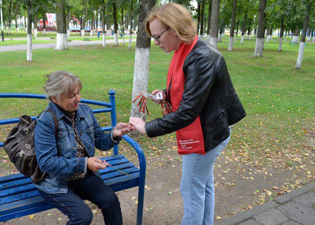 Активное участие в акции принимают и Климовичские активисты ОО «БРСМ» во главе с первым секретарем райкома Алесей Котовой. В городском парке юноши и девушки раздавали ленточки цвета Государственного флага Республики Беларусь, ведь наш флаг — это не только символ государственного суверенитета. Это символ истории, побед и достижений белорусов.