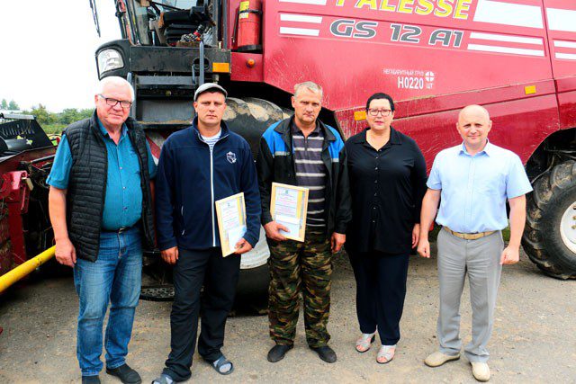 С большим успехом хлеборобов поздравили заместитель председателя Климовичского райисполкома — начальник управления по сельскому хозяйству и продовольствию Людмила Голикова и председатель райкома профсоюза работников агропромышленного комплекса Александр Голочевский. Они вручили труженикам Благодарственные письма райисполкома и профсоюзные подарки, пожелали новых больших успехов.