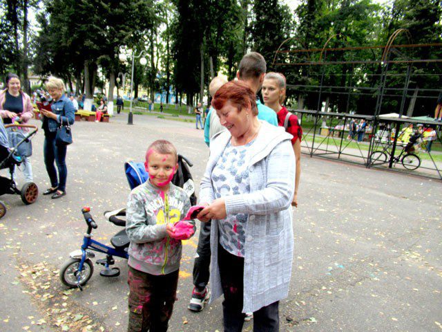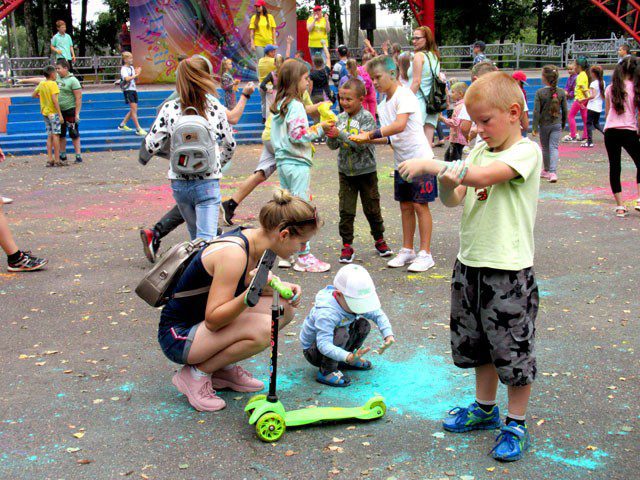 После пяти вечера эстафету принял фестиваль красок «Холли». Он подарил много радости детворе, которая в скором времени и сама стала похожей на разноцветную радугу.