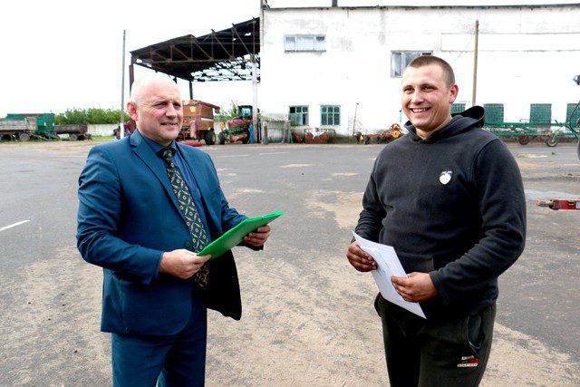 Следующим на нашем пути было ОСП « Подсобное хозяйство» ОАО «Климовичский ЛВЗ», где профсоюзные награды получили комбайнеры Александр Кубышко и Сергей Цыбан.