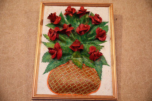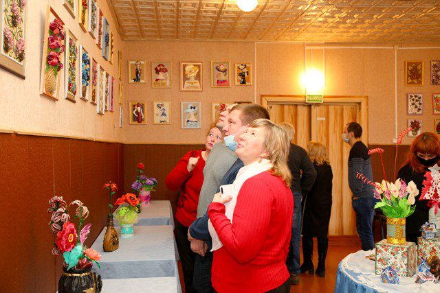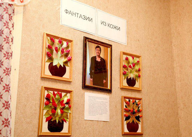2 декабря, на открытии выставки, Елена Анатольевна рассказала, что занимается этим непростым, но увлекательным рукоделием три года. Делала раньше картины из кожи для себя, но по совету коллег решила попробовать организовать в Климовичах свою первую выставку.