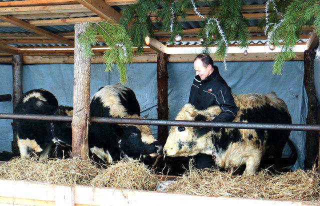 2021 год по Восточному календарю — год Белого Металлического Быка, поэтому прошу хозяина домовладения сделать мне маленькую экскурсию по подворью. Так, вскорости мы добираемся до навеса, где среди бычков центральное место занимают полуторагодовалые Дед Мороз и Барон.