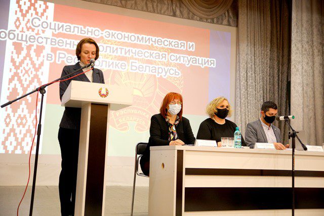 Как сохранить стабильность в Беларуси, можно ли вести конструктивный диалог с оппозицией — эти и другие вопросы обсуждали участники семинара, который состоялся сегодня в районном Центре культуры. На встречу с климовчанами пригласили первого заместителя председателя Могилевской областной организационной структуры РГОО «Белорусское общество «Знание» Раису Шуголееву, старшего преподавателя кафедры всеобщей истории УО «Могилевский государственный университет им. А.А. Кулешова» Алексея Бирюкова, кандидата психологических наук, лектора Валентину Авраменко. Непростая внутри- и внешнеполитическая обстановка сегодня заставляет большинство белорусов объединять усилия для сохранения стабильности в обществе. Только в сплоченном государстве можно успешно противостоять различным вызовам времени. А их сегодня, к сожалению, хватает. Это и распространение коронавирусной инфекции, экономический кризис, угроза цветной революции и так далее.