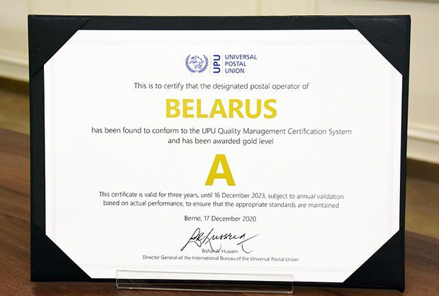 РУП «Белпочта» присвоен сертификат Всемирного почтового союза в области управления качеством...