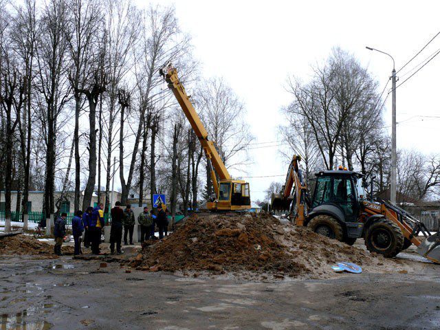 На пересечении улицы Магона и площади 50 лет Великого Октября в райцентре специалисты ВКХ участка № 3 филиала «Костюковичиводоканал» 17 марта проводили работы по замене старого водяного колодца на новый.