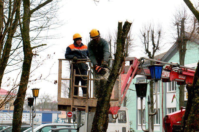 С начала марта коммунальщики кронировали деревья на улицах Ленина и Комсомольская в райцентре, на улице Советская в агрогородке Тимоново и других местах.