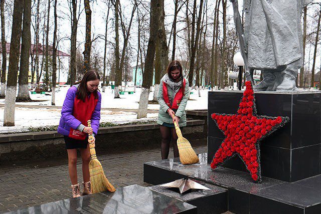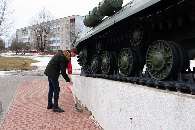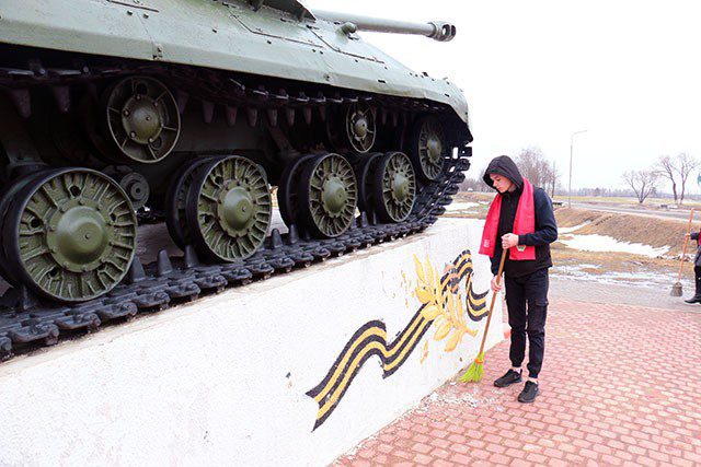 Так, волонтеры отряда «Лидер» ОО «БРСМ» УО «Климовичский государственный аграрный колледж» навели порядок около танка ИС-3, установленного на въезде в городе Климовичи в честь 70-летия освобождения Климовичского района от немецко-фашистских захватчиков и героического подвига танкистов-климовчан в годы Великой Отечественной войны.