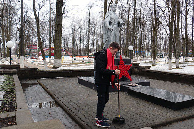 Учащиеся средней школы № 3 упорядочили территорию около памятника, установленного в городском парке на братской могиле воинов, погибших при освобождении города.