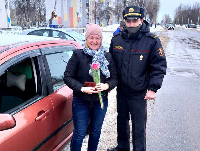 8 марта сотрудники Климовичской Госавтоинспекции провели необычную акцию: они с букетами цветов поздравили женщин-водителей с праздником.
