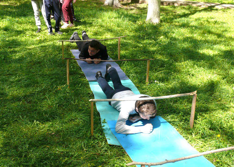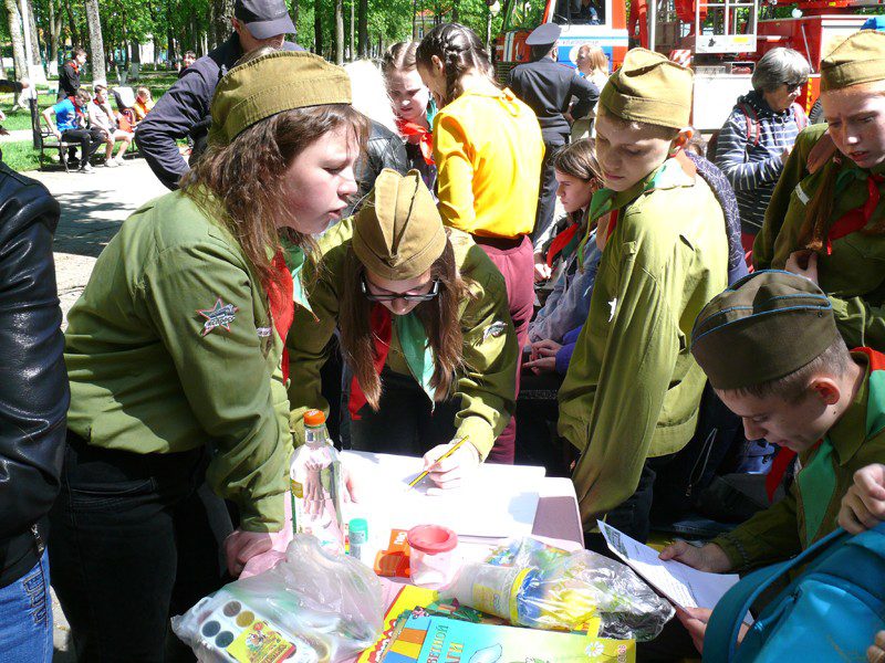 Первый конкурс строевой подготовки и представление своей команды получился одинаково хорошо у всех. Затем команды разделились: одни пошли рисовать боевой листок, другие на сборку и разборку автомата, третьи — на туристическую эстафету. А еще был пожарный этап и КВИЗ «75 кадров о войне». Три часа настоящей борьбы!