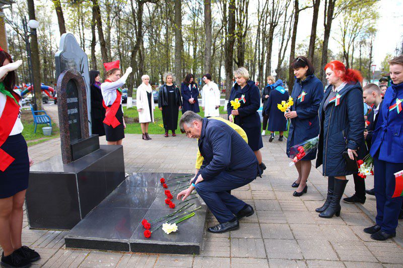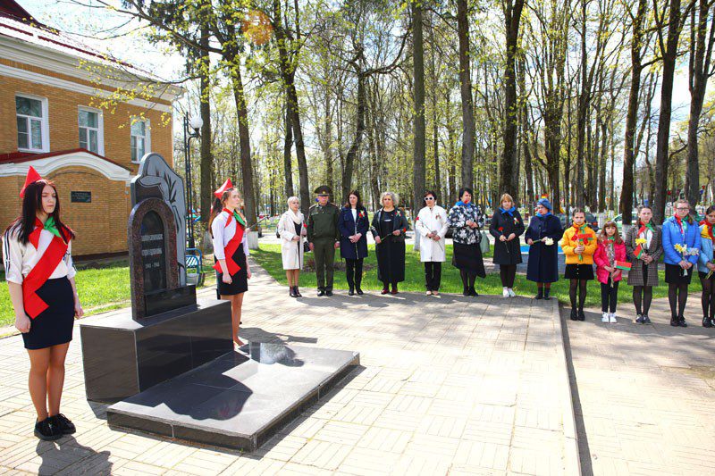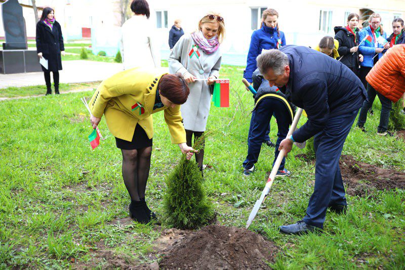 Работники райисполкома, райвоенкомата, представители общественных организаций, директора и педагоги школ района, юные климовчане высадили туи возле памятника «Женщинам-климовчанкам, матерям и вдовам войны».