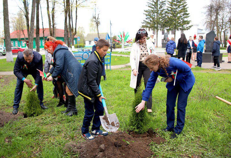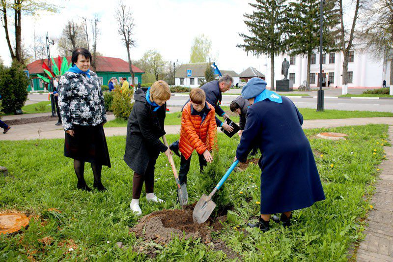 Символично, что туи высаживали представители разных поколений климовчан. Ради мирного неба над головой ныне живущих, памяти о погибших в ту великую войну.