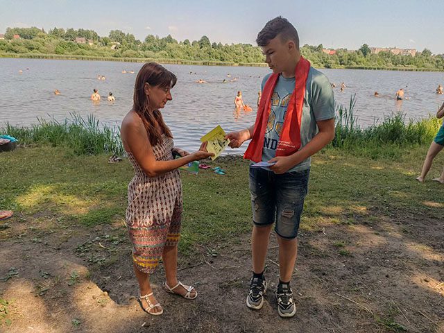 В эти жаркие дни патруль в составе первого секретаря райкома ОО «БРСМ» Алеси Котовой, инспектора РОЧС Андрея Осмоловского, фельдшера-валеолога райЦГЭ Ирины Шашковой и бойцов молодежных отрядов охраны правопорядка (МООП) проводят рейды по водоемам. Отдыхающим разъясняют правила поведения у воды и на воде. Раздают тематическую литературу.
