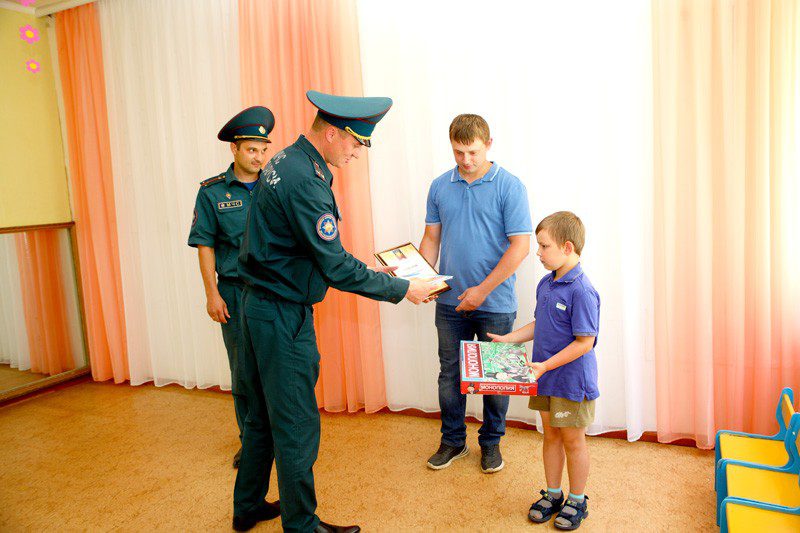 Начальник Климовичского РОЧС Дмитрий Жуков вручил семье Абдурахмановых заслуженную награду