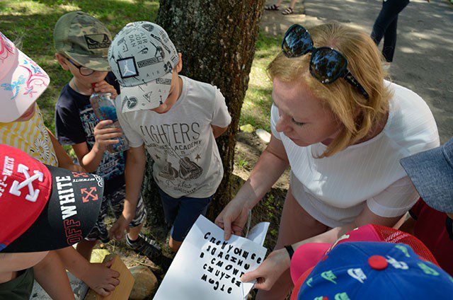 Первый секретарь райкома ОО «БРСМ» Алеся Котова и фельдшер-валеолог Ирина Шашкова провели с воспитанниками лагерей увлекательную квест-игру «Поиск сокровищ». В этой игре ученики решали математические, логические задачки, искали подсказки. На открытом воздухе мероприятия проходили шумно и весело.