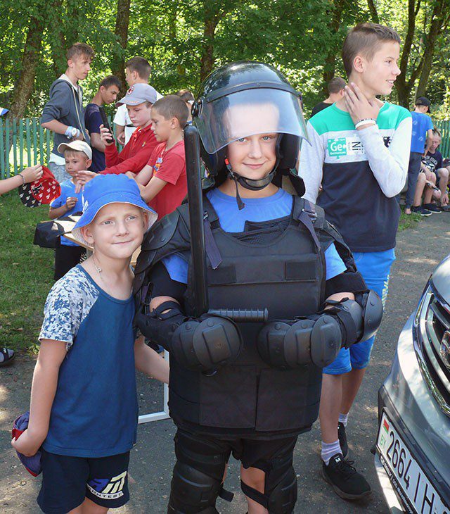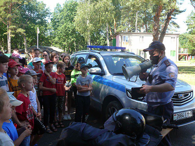 В гости к детям приезжают работники различных служб. Вот и в этот раз с целью популяризации службы в милиции к отдыхающим с визитом пожаловали начальник инспекции по делам несовершеннолетних Климовичского РОВД Денис Герасимов и сотрудники Департамента охраны.