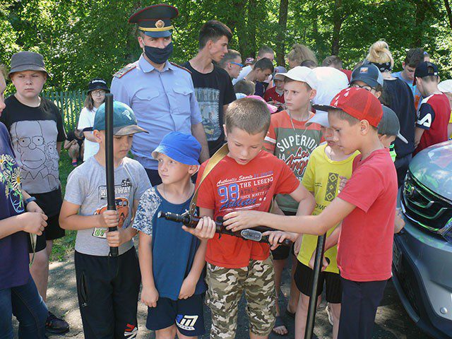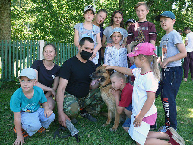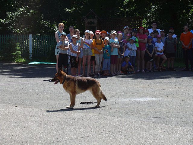 Милиционеры привезли с собой вооружение, спецсредства и экипировку, которой пользуются во время несения службы. Дети с удовольствием рассматривали и фотографировались с автоматом, пистолетом, примеряли на себя элементы экипировки. А сколько радости у ребят вызвала служебная собака! Она такая умная и послушная! Овчарка точно и быстро выполняла команды кинолога, вела себя смирно и позволяла погладить. Глядя на нее, некоторые дети, наверное, задумались, что им необходимо подтянуть свой уровень дисциплинированности.