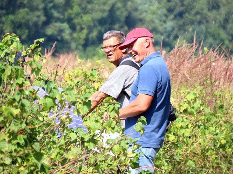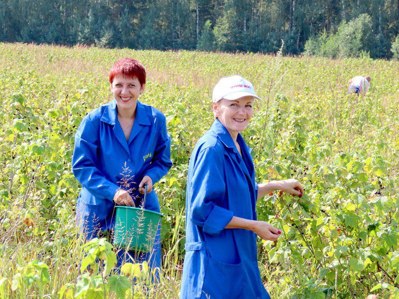 Еще в бытность совместного хозяйствования ликероводочного завода и его подсобного предприятия возле деревни Лозовица был заложен сад, где на 145 гектарах посадили смородину, яблони, черноплодную рябину. Сегодня забота о деревьях и кустарниках легла на плечи администрации КСУП «Михалинский». Однако самим аграриям в период жатвы практически невозможно отвлечь значительные людские ресурсы на уборку урожая смородины. Вот тут и подставили плечо труженики предприятий, организаций, учреждений Климовщины. Представители субъектов хозяйствования района по несколько часов трудятся в саду. Спелые ягоды черным жемчугом блестят в ящиках, которые время от времени наполняются и составляются в ряды умелыми руками бригадира-садовода Алеси Белашовой.