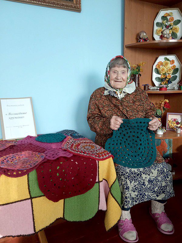 Анна Афанасьевна Смолякова вяжет удивительные коврики из тканей, а из ниток делает уникальные салфетки. Татьяна Павловна Епифанова вышивает иконы. Леонид Васильевич Береснев — самый активный читатель в отделении. Книги сюда регулярно доставляет библиотекарь Галина Фролова.