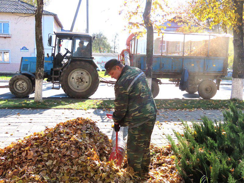 Как рассказал заместитель директора УКП «Коммунальник» Михаил Кухаренко, ежедневно на уборку территорий выходят 27 дворников: 25 — в городе и 2 — в сельских населенных пунктах.