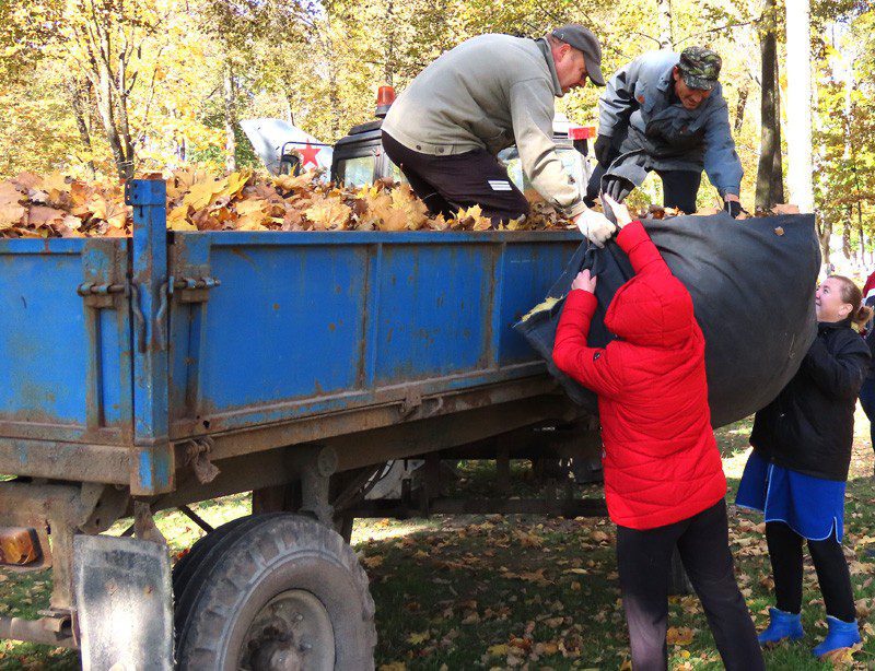 К уборке городского парка подключились представители первой и третьей городских школ, аграрного колледжа.