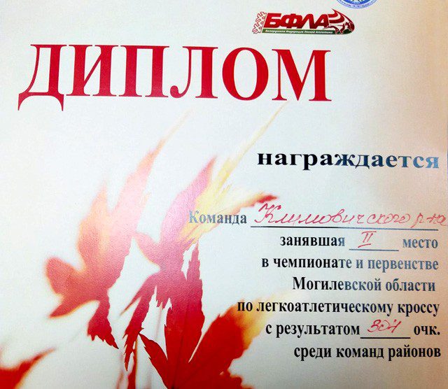 16 октября в Могилеве в районе набережной реки Дубровенка проходили осенние чемпионат и первенство Могилевской области по легкоатлетическому кроссу. В этих состязаниях поучаствовали и представители Климовичского района. В состав сборной команды вошли сильнейшие юные и взрослые спортсмены Климовщины шести возрастных групп. Всего — 24 человека.