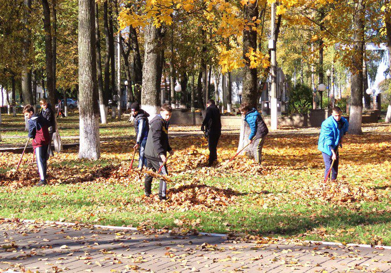 ФОТО: климовчане убирают опавшую листву