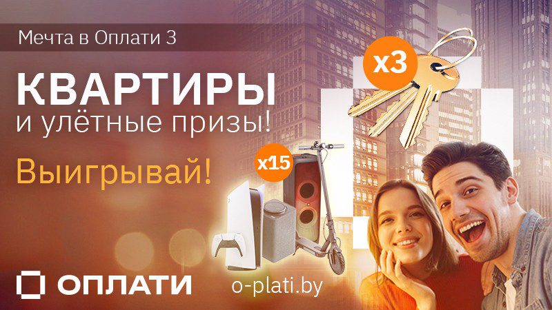 И приятный бонус! С Оплати™ можно получить свое жилье в Минске и дорогостоящие подарки!