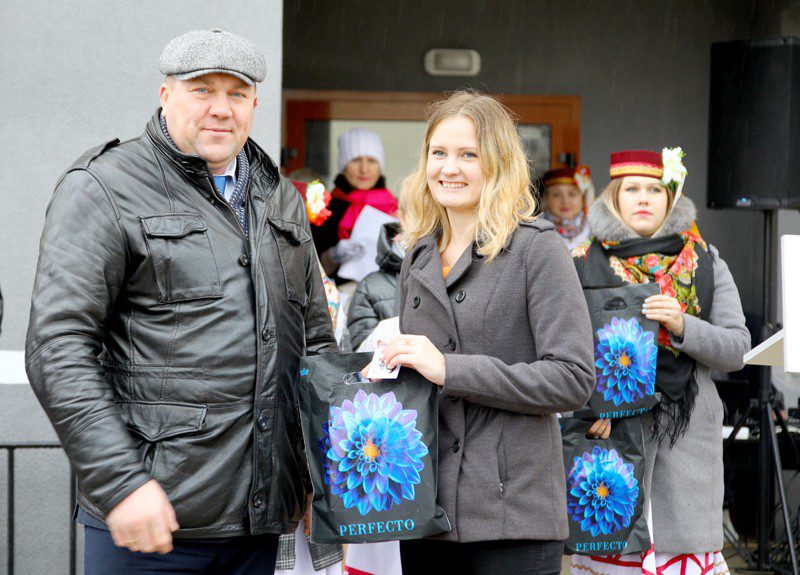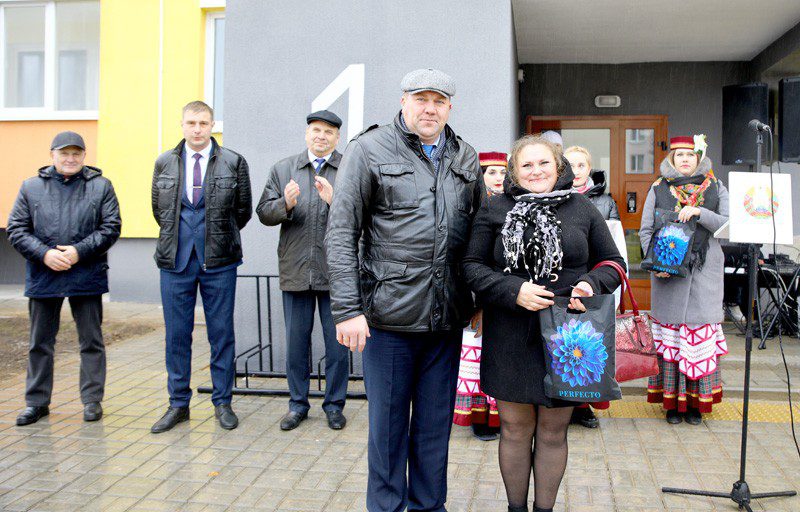 Председатель райисполкома вручил ключи и памятные подарки от районной организации общественного объединения «Белая Русь» присутствующим на празднике новоселам.