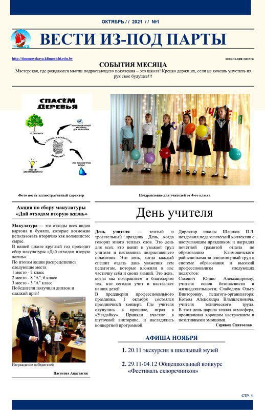 В ГУО «Тимоновская средняя школа Климовичского района» решили организовать выпуск школьной газеты «Вести из-под парты».