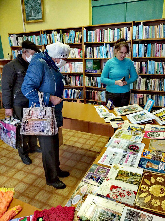 — На выставке представлены работы наших творческих и увлеченных читателей. Например, привлекают внимание картины, Валентины Афанасьевны Чумаковой и Валентины Павловны Кабаковой, выполненные в технике вышивки крестиком.