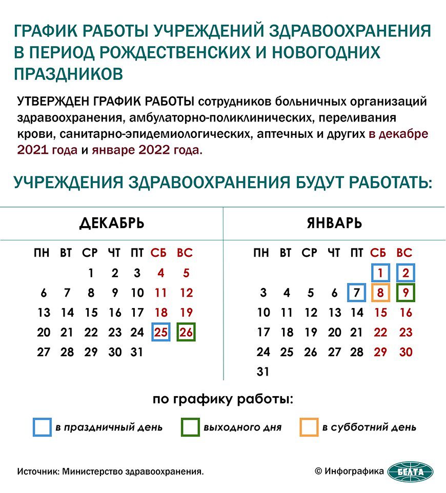 ИНФОГРАФИКА: График работы учреждений здравоохранения в период рождественских и новогодних праздников