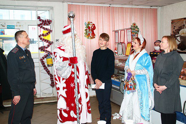 В нынешнем году (как и в прошлом) поздравления принимали учащиеся Тимоновской средней школы. Для них организовали праздник, на котором Дед Мороз со Снегурочкой подарили подарки. Также детей поздравили с наступающим Новым годом заместитель начальника РОВД по идеологической работе и кадровому обеспечению Руслан Ермаченко и первый секретарь райкома ОО «БРСМ» Алеся Котова. Они пожелали ребятам успехов в учебе, хороших каникул, быть дисциплинированными, активными в общественных делах и стараться усердно постигать знания, ведь от это фундамент будущей взрослой жизни. А старший инспектор по АП ОГАИ Климовичского РОВД Вероника Короткая раздала детям книжки-раскраски.