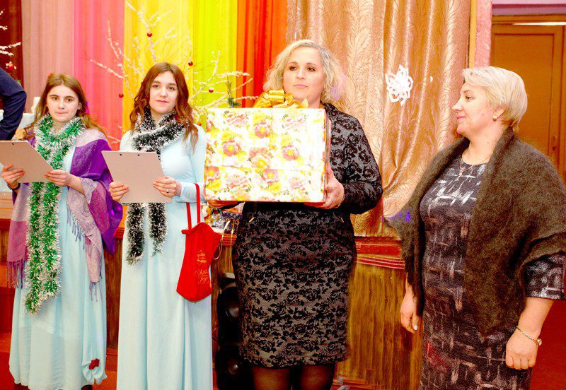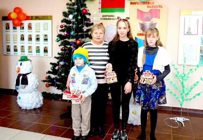 Председатель районной организации РОО «Белая Русь» Алла Антипова поздравила с Новым годом и вручила подарки учащимся из семей Галковских, Бабичевых, Юрченко, Гололобовых.