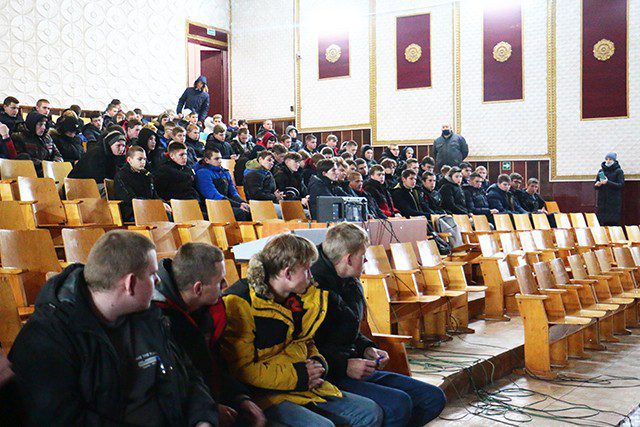 С целью познакомить молодежь с военными специальностями и заинтересовать ее в выборе стези военного с учащимися выпускных классов средних школ г. Климовичи, а также учащимися УО «Климовичский государственный аграрный колледж» встретились начальник лаборатории кафедры устройства и эксплуатации бронетанкового вооружения Военной академии Республики Беларусь Денис Зевалич и военный комиссар Климовичского и Хотимского районов Андрей Хижняк. Встречи проходили в актовых залах.