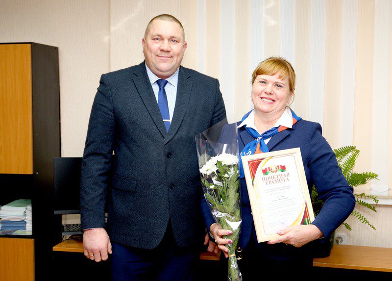 Лидер депутатского корпуса Климовщины Наталья Асмоловская вручила Почетную грамоту районного Совета депутатов Ольге Листопадовой.