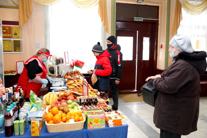 Работает торговая точка Климовичского райпо, где можно купить выпечку, фрукты и другие продукты питания.