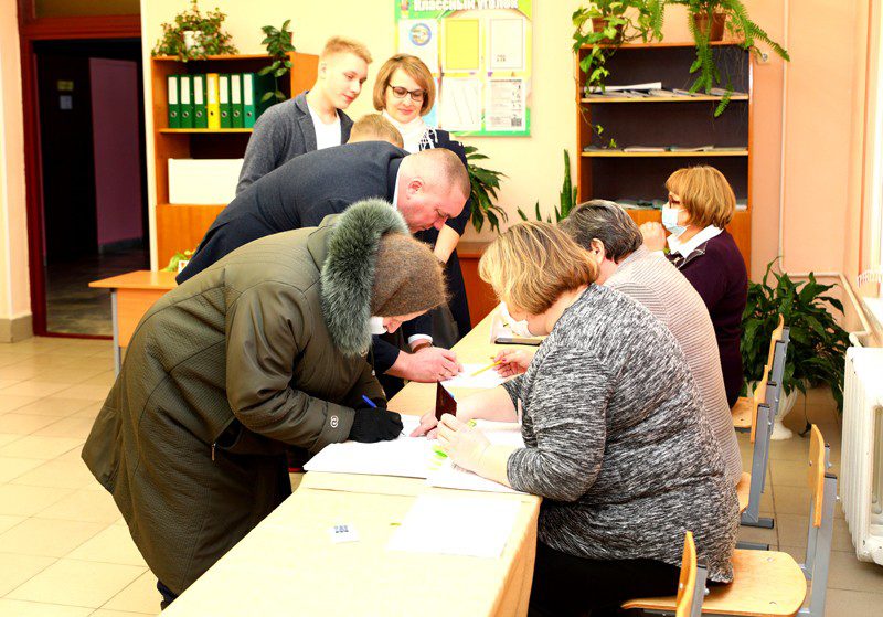 Председатель райисполкома Михаил Демидов вместе с семьей сделал свой выбор утром 23 февраля на Восточном участке для голосования № 4, расположенном в третьей городской школе.