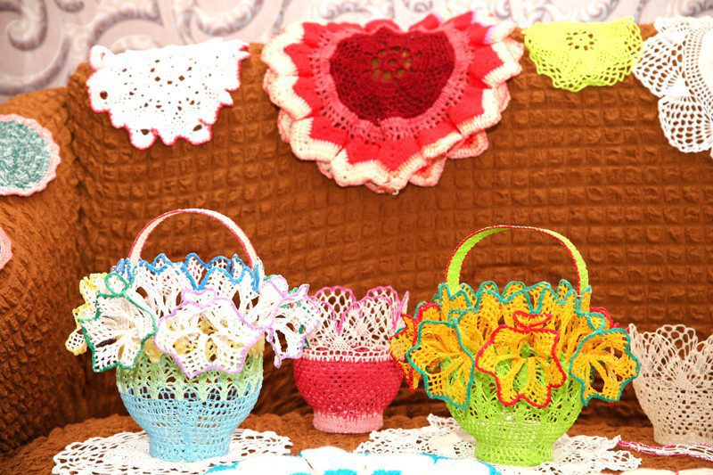Вторая наша рукодельница Клара Семеновна Куртикова родилась в семье педагогов в д. Селец. Отец умер в 33 года. Клара была старшей из троих детей. Повзрослеть ей пришлось рано — нужно было матери помогать. Еще будучи школьницей, на каникулах шла работать на ферму, доила группу коров, чтобы купить себе обновки. Получив аттестат о среднем образовании, поступила на заочное отделение филфака Могилевского педагогического института. Тогда же устроилась учителем русского, белорусского языков и литературы в Дубровицкую школу. В 1971 году вышла замуж за своего одноклассника Михаила Павловича Куртикова. В 1972 году у супругов родилась дочь Татьяна, а через четыре года — еще одна, Ольга. Михаила Павловича назначили председателем Тимоновского сельского Совета, а Клара Семеновна пошла работать учителем русского языка и литературы в Тимоновскую школу. В 1986 году женщина очень сильно травмировала ногу. Пришлось пережить две операции. Когда лежала в больнице в Минске, у соседки по палате увидела очень красивую вазу, связанную крючком, и попросила ее продать эту прелесть. На что та ответила: «Не продам. Бери крючок, нитки, буду учить вязать. Все равно в больнице делать нечего». Именно там, на больничной койке, Клара Куртикова и сделала свою первую салфетку. А потом пошло-поехало. Как только выдавалась свободная минутка, женщина садилась за рукоделие. Сначала вязала по схемам из журналов, а потом уже сама стала придумывать и узоры для салфеток, и формы для ваз.