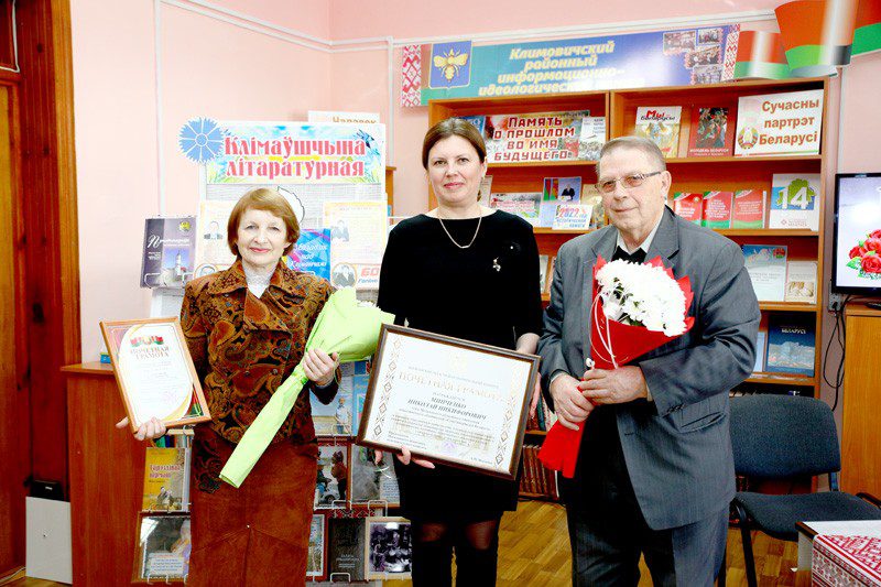 С праздником юбиляров поздравили заместитель председателя Климовичского райисполкома Наталья Глушакова и начальник отдела идеологической работы, культуры и по делам молодежи Климовичского райисполкома Виктория Прокофьева. В торжественной обстановке Почетная грамота Могилевского облисполкома за активную общественную деятельность, значительный личный вклад в развитие и сохранение литературных традиций, духовно-нравственное и патриотическое воспитание подрастающего поколения была вручена Николаю Минченко, члену Могилевского областного отделения общественного объединения «Союз писателей Беларуси». Галина Цыганкова, ответственный секретарь редакции газеты «Родная ніва», за многолетний добросовестный труд, высокий профессионализм награждена Почетной грамотой Климовичского райиполкома.