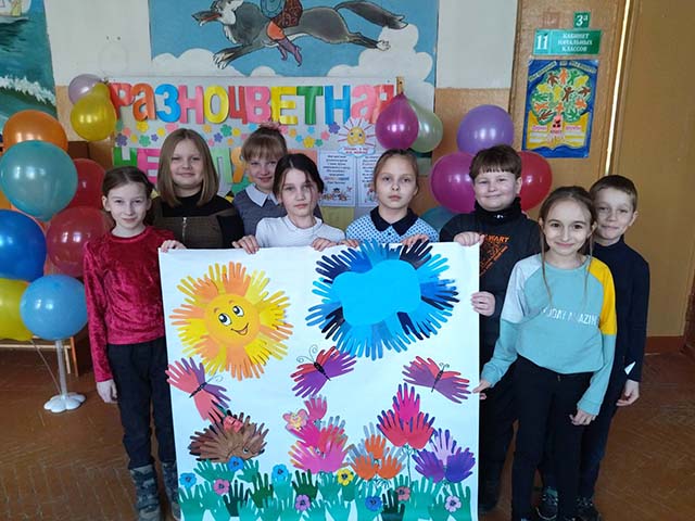 В ГУО «Средняя школа №4 г. Климовичи» с 14 по 19 марта 2023 г. была проведена предметная неделя в начальных классах «Разноцветный марафон знаний». Девиз недели — «Удивление! Разнообразие! Творчество! Дружба! Фантазия!».