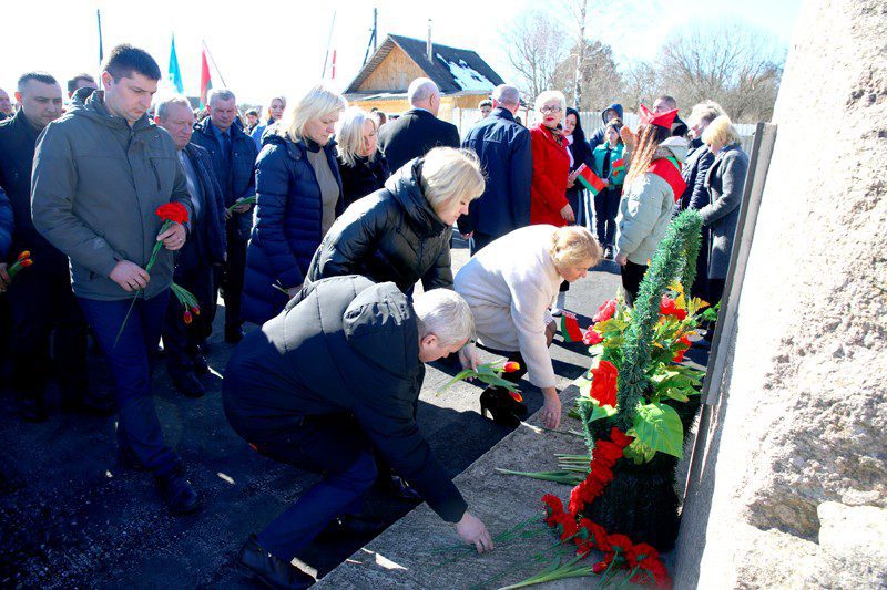 — Трагедия Хатыни и тысяч населенных пунктов с такой же судьбой — это неутихающая боль в сердцах белорусов, — подчеркнул Михаил Владимирович. — Мы собрались вместе, чтобы почтить память невинных и защитить правду о той войне. Правда жестока, а память тяжела. Вдумайтесь: оккупанты и их пособники сожгли 9200 белорусских деревень. Из них более 5 тысяч — вместе с жителями. В Климовичском районе судьбу Хатыни повторила деревня Карпачи. Фашисты принесли на нашу землю боль и разрушения. Нам никогда не забыть страшные страницы истории Великой Отечественной войны. Мы никогда не простим жестокость, бесчеловечность и бесчинства врага на нашей земле. Мы это помним, и в этом наша сила. Вечная память убитым, замученным и растерзанным.