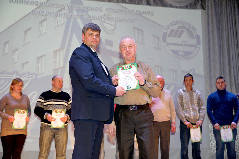 Церемонию награждения провел руководитель предприятия Сергей Володкович. Среди тех, кто был удостоен различных наград, — труженики УКП «Коммунальник» Светлана Егорченко, Светлана Панасенко, Сергей Хартник, Константин Беляцкий, Сергей Захаренко, Анатолий Королевич, Сергей Красовский, Марина Пасынкова, Александр Сакович, Владимир Старовойтов, Владимир Абраменко, Андрей Аверкин, Александр Астапенко, Александр Бамбизов, Виктор Бобыльцов, Алексей Богатырев, Ольга Борисова, Петр Глушаков, Елена Гуравская, Владимир Дьяков, Иван Емельянов, Валентина Еремина, Василий Жариков и другие.