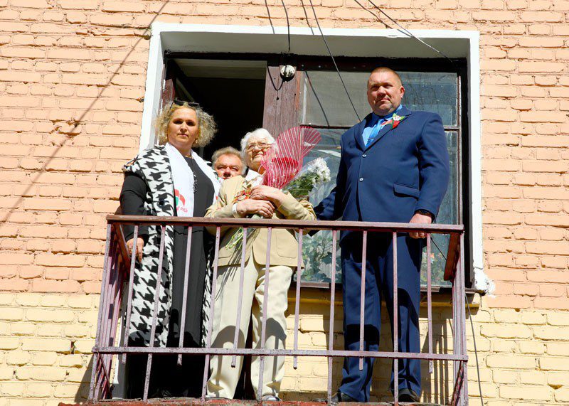 Председатель райисполкома Михаил Демидов, председатель районного Совета депутатов Наталья Асмоловская, депутат Палаты представителей Национального собрания Республики Беларусь Владимир Азаренко утром 9 мая поздравили с праздником труженицу тыла Любовь Ефимовну Прудкову.