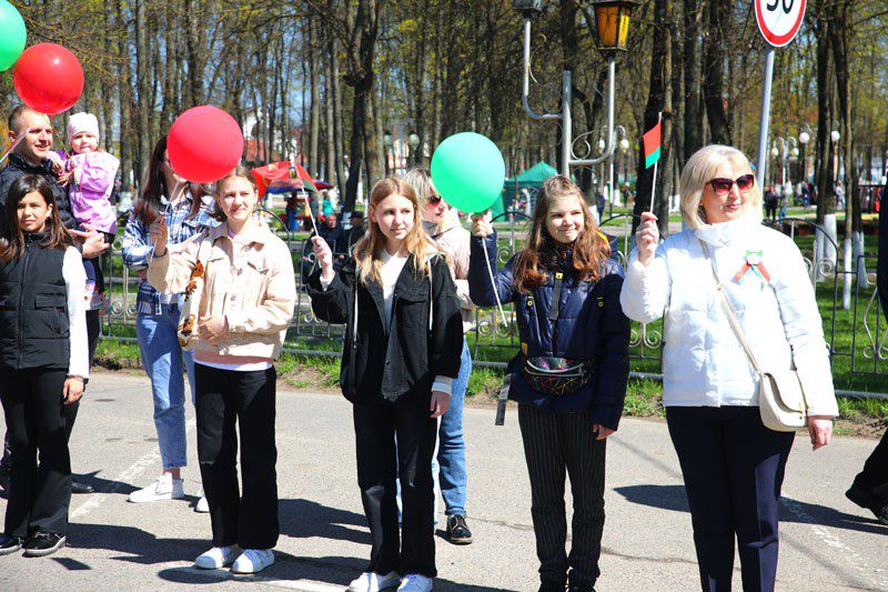 Праздничная колонна прошествовала по улицам Коммунистической, Советской до Аллеи славы в городском парке.