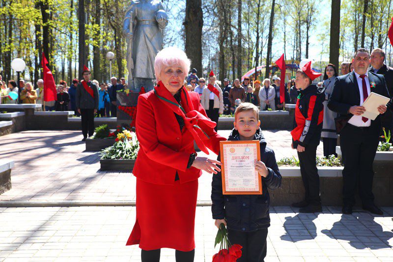 В рамках мероприятий, проводимых под эгидой Года исторической памяти, был организован конкурс детских работ «Нам мир завещано беречь». Председатель районной ветеранской организации Валентина Цыганкова вручила Диплом второй степени за участие в конкурсе Родиону Новгородскому из сельской детской школы искусств агрогородка Тимоново.