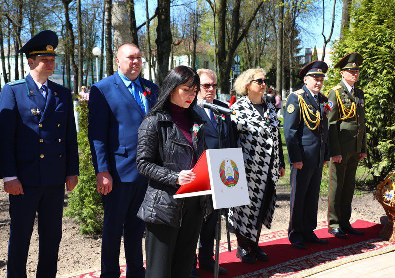 С Днем Великой Победы участников мероприятия поздравила член президиума районной ветеранской организации, член Компартии Беларуси Елена Латыголец.