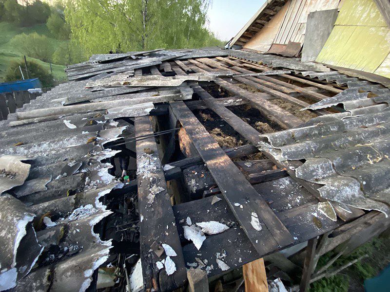 Огнем повреждены стена снаружи дома, входная дверь и кровля веранды. Пострадавших нет.